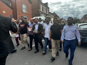 যুক্তরাজ্য বিএনপির গণ পদযাত্রা সফল করার লক্ষ্যে কয়ছর এম আহমেদের ম্যানচেষ্টার টাউনে লিফলেট বিতরণ