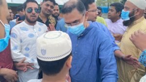 এসময় সংগ্রাম টিভির চেয়ারম্যান শেখ সাদেক আহমেদ যুক্তরাজ্য বিএনপির সাধারণ সম্পাদক জনাব কয়সর এম আহমেদ এর সাথে কথা বললে তিনি জানান তারেক রহমান সাহেব নেতাকর্মীদের সাথে ঈদের আনন্দ ভাগাভাগি করতে পছন্দ করেন। তিনি যেহেতু অসুস্থতা ও অবৈধ সরকারের ষড়যন্ত্র মূলক মামলার কারণে দেশে পারছেন না তাই এখানে দেশের মানুষের সাথে ঈদ এর নামাজ আদায় করে সেই আনন্দ শেয়ার করে নেন।