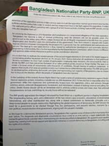 যুক্তরাজ্য বিএনপির পক্ষ থেকে ব্রিটিশ প্রধানমন্ত্রীর দপ্তরে স্মারক লিপি প্রদান।