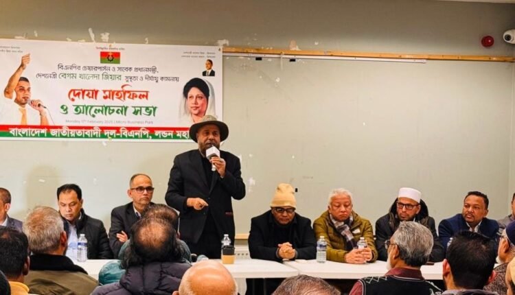 বাংলাদেশ জাতীয়তাবাদী দল-বিএনপির চেয়ারপারসন ও সাবেক প্রধানমন্ত্রী দেশনেত্রী বেগম খালেদা জিয়ার সুস্থতা ও দীর্ঘায়ু কামনায় লন্ডন মহানগর বিএনপির দোয়া মাহফিল ও আলোচনা সভা এবং যুক্তরাজ্য বিএনপির অধীনে জোনাল কমিটি গঠনের লক্ষ্যে লন্ডন মহানগর বিএনপির সদস্য ফরম জমা দেওয়া হয়। গতকাল ১৭ ফেব্রুয়ারি ২০২৫,সোমবার
