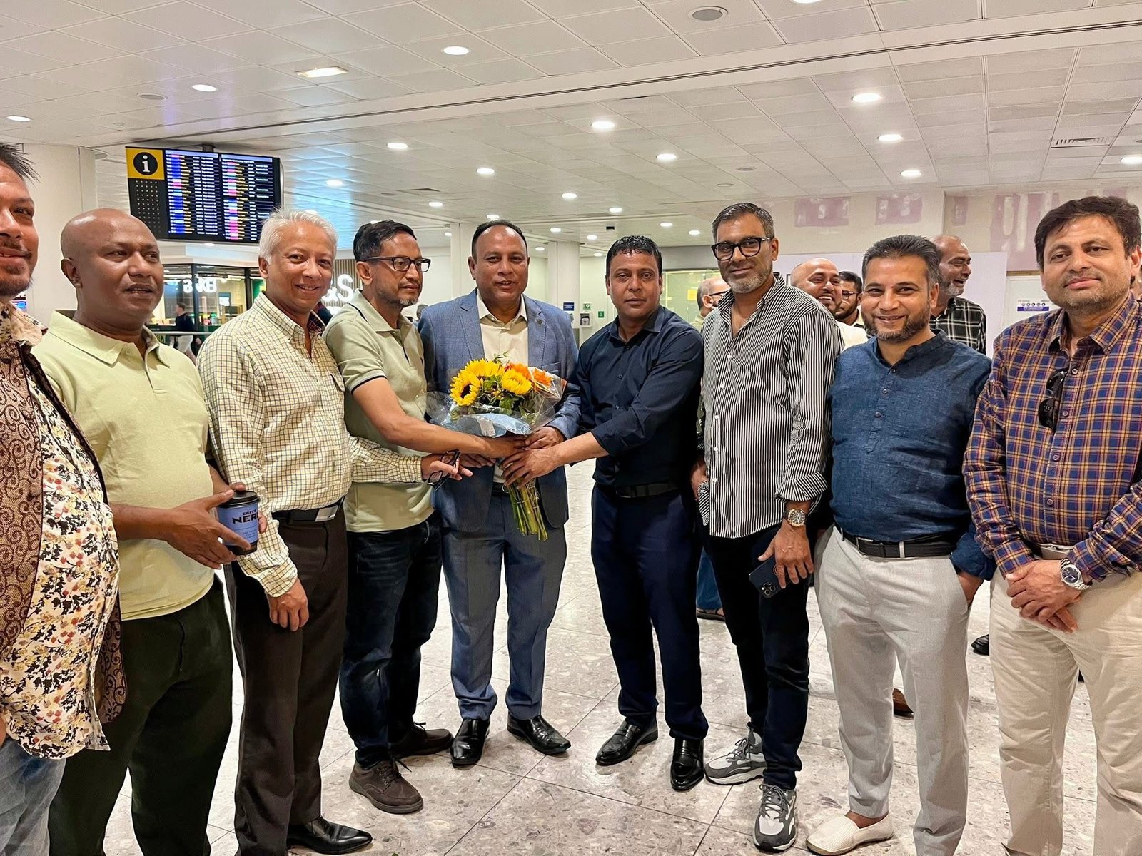 এ সময় উনাকে অভ্যবর্ধনা জানাতে হিত্রো এয়ারপোর্ট এ সমবেত হয়েছিলেন যুক্তরাজ্যে বিএনপি ও অঙ্গ সংগঠনের নেতাকর্মীরা ।
